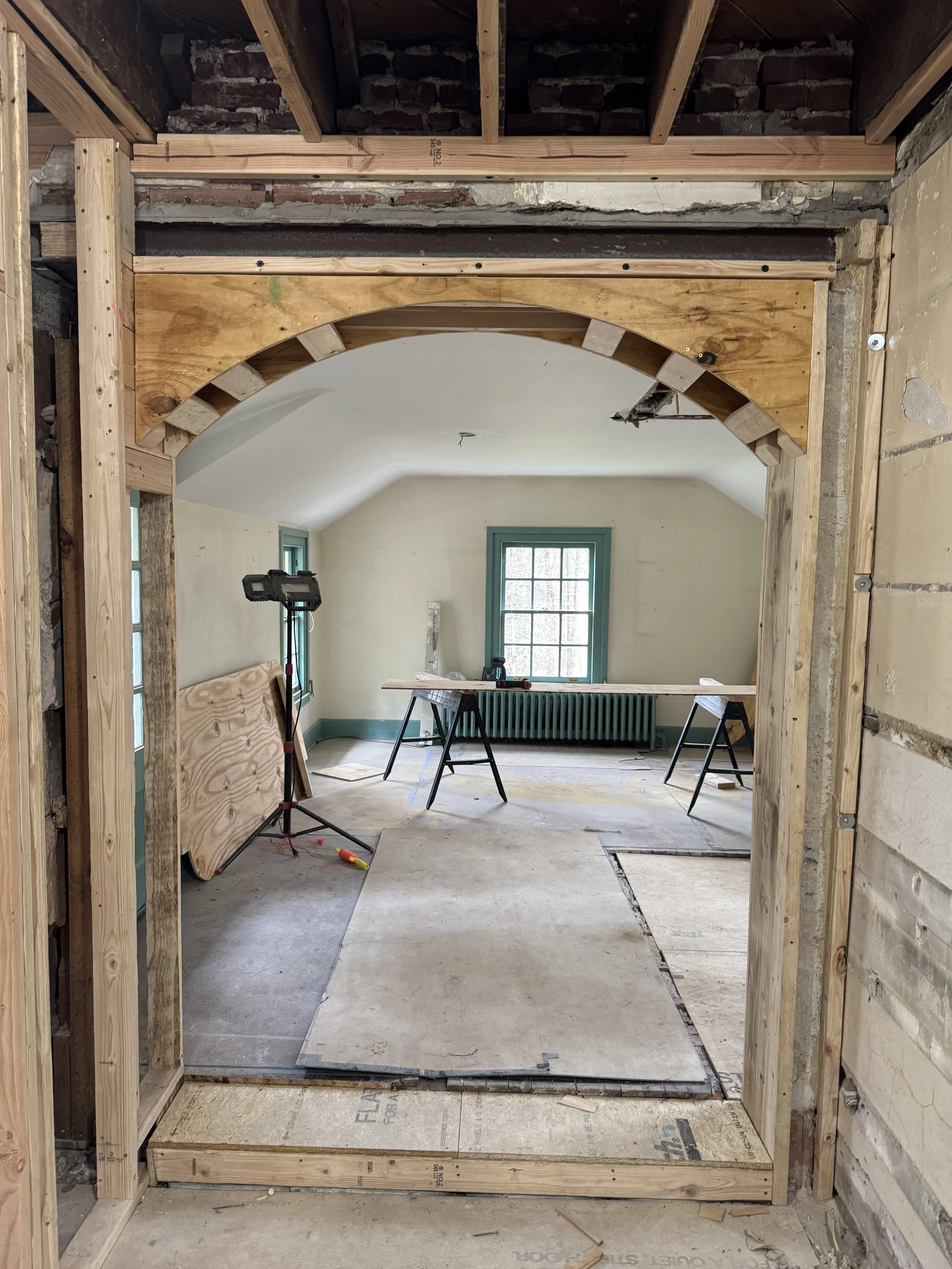 One of our favorite elements in this house is the arches. They are subtle, slight curves without ornate posts or woodwork. So, where appropriate, we will maintain what is existing and get to add a few throughout. When we opened up the doorway and took out the bathroom to this back room that previously served as a housekeeper’s quarters, we took the opportunity to add an arch. This room will be our “snug,” which is what the English call their cozy dens used for relaxation, TV watching, and reading.
